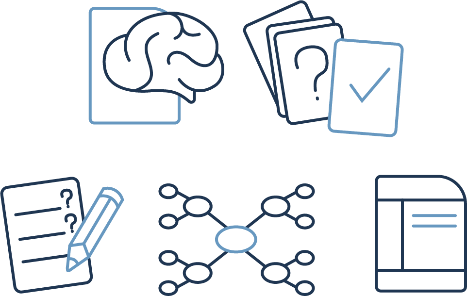 In de lessen worden zes bewezen effectieve leerstrategieën aangeleerd: informatie uit je hoofd halen, uitleggen aan jezelf, woorden en plaatjes combineren, concrete voorbeelden gebruiken, gespreid leren en leerstof afwisselen. Leerlingen passen deze strategieën toe in de werkvormen: braindump, mindmap, flitskaartjes, oefenvragen bedenken en de Cornell-samenvatting.